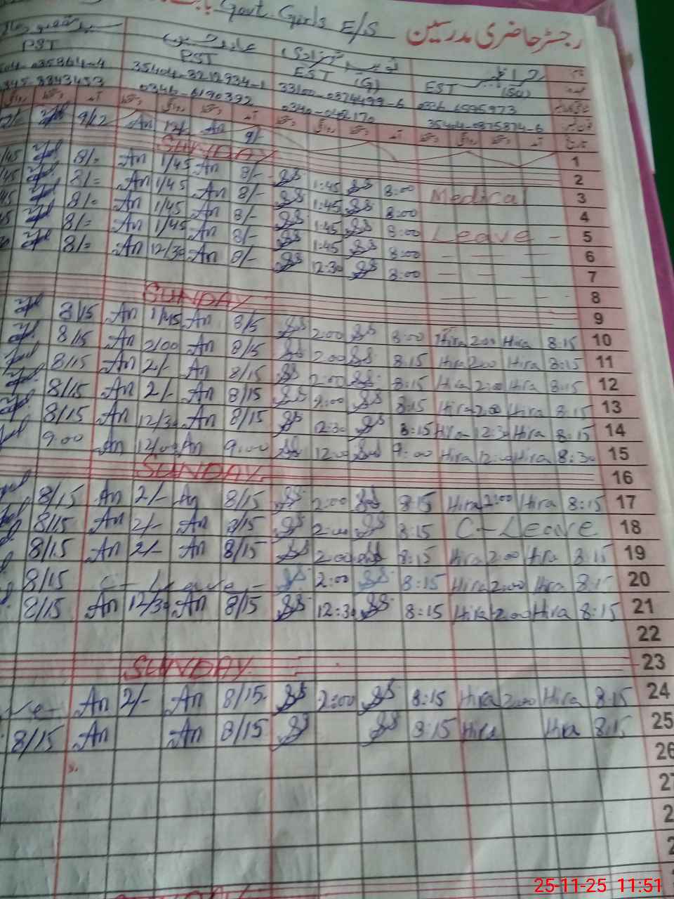 | Leave | Duty | Absent | Maternity | Medical | Ex- Pak |