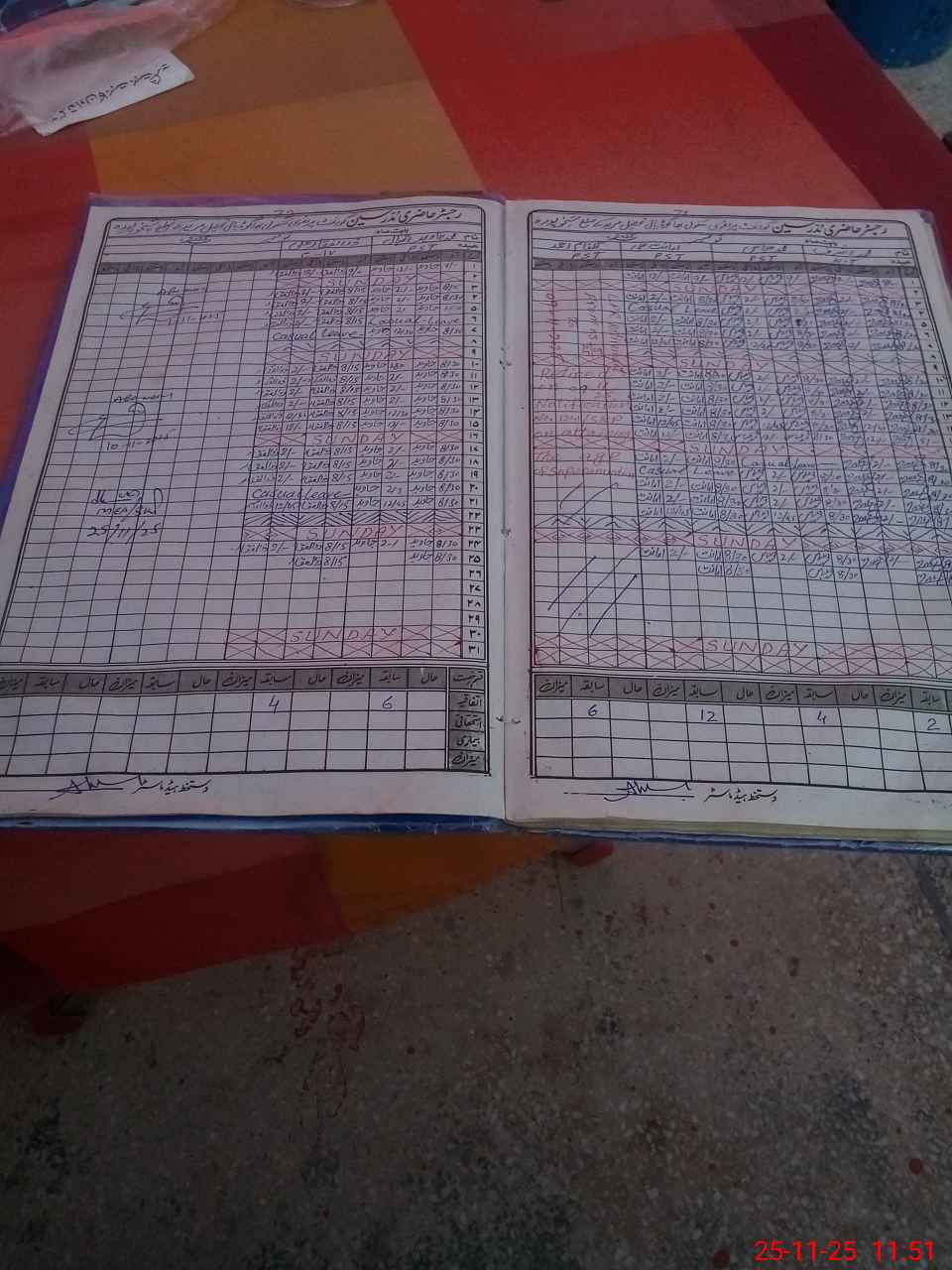 | CNIC | Full Name | Designation | R/C | Absence During Last Calender Month |
