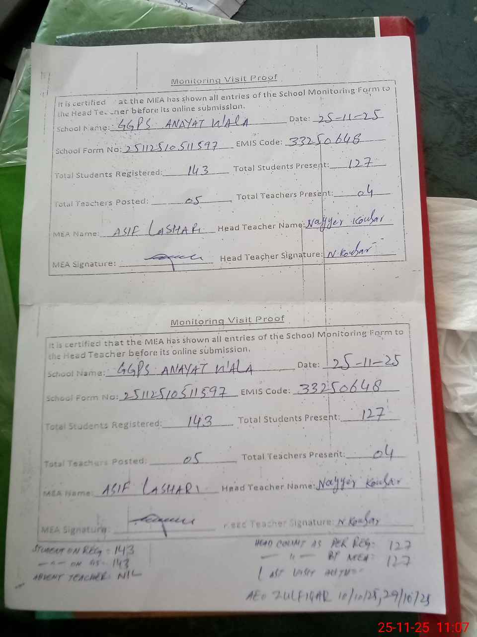 | EMIS Code: 33250648 | Name of School: GGPS ANAYAT WALA | |||