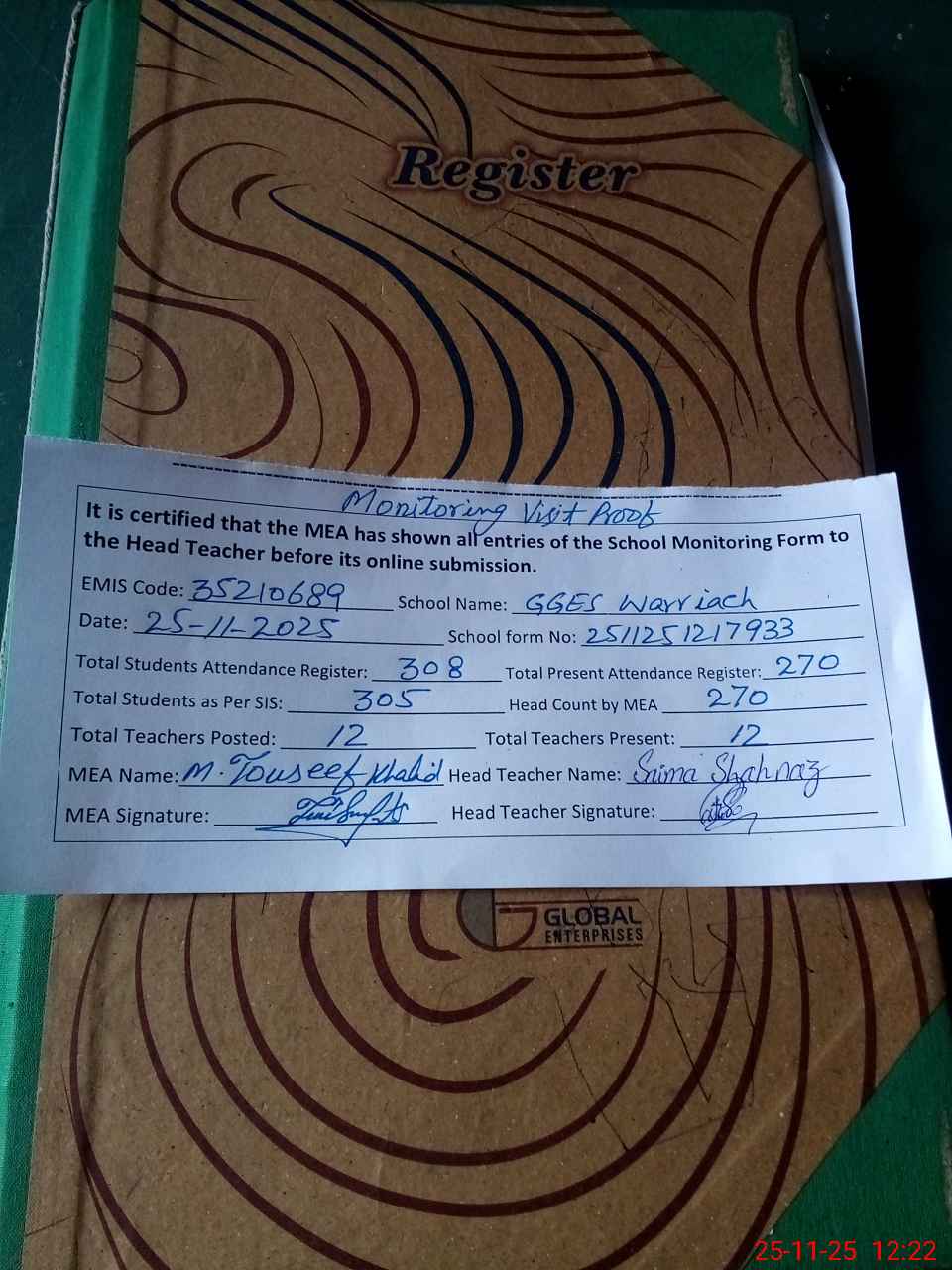 | EMIS Code: 35210689 | Name of School: GGES WARRIACH | |||