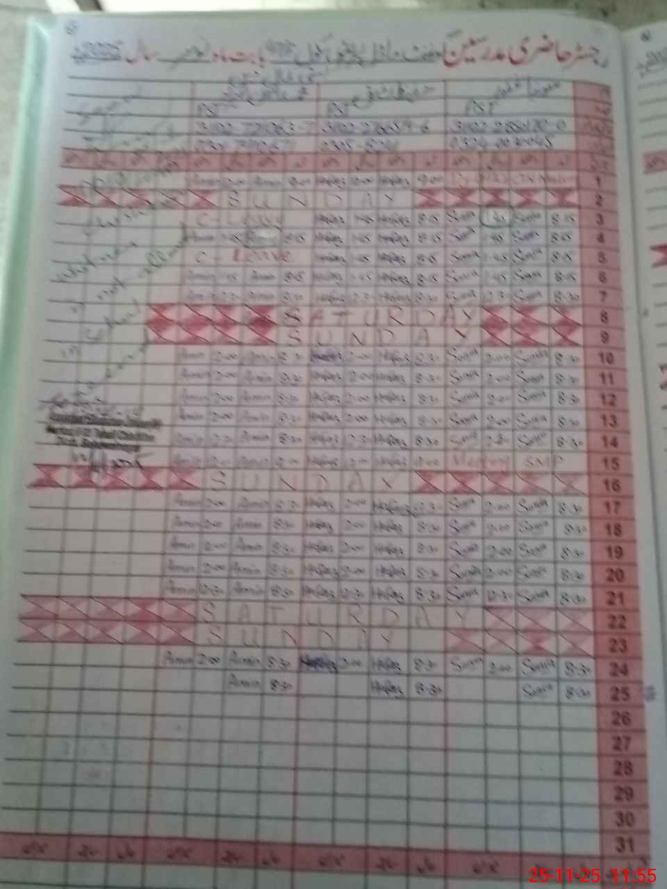 | CNIC | Full Name | Designation | R/C | Absence During Last Calender Month |