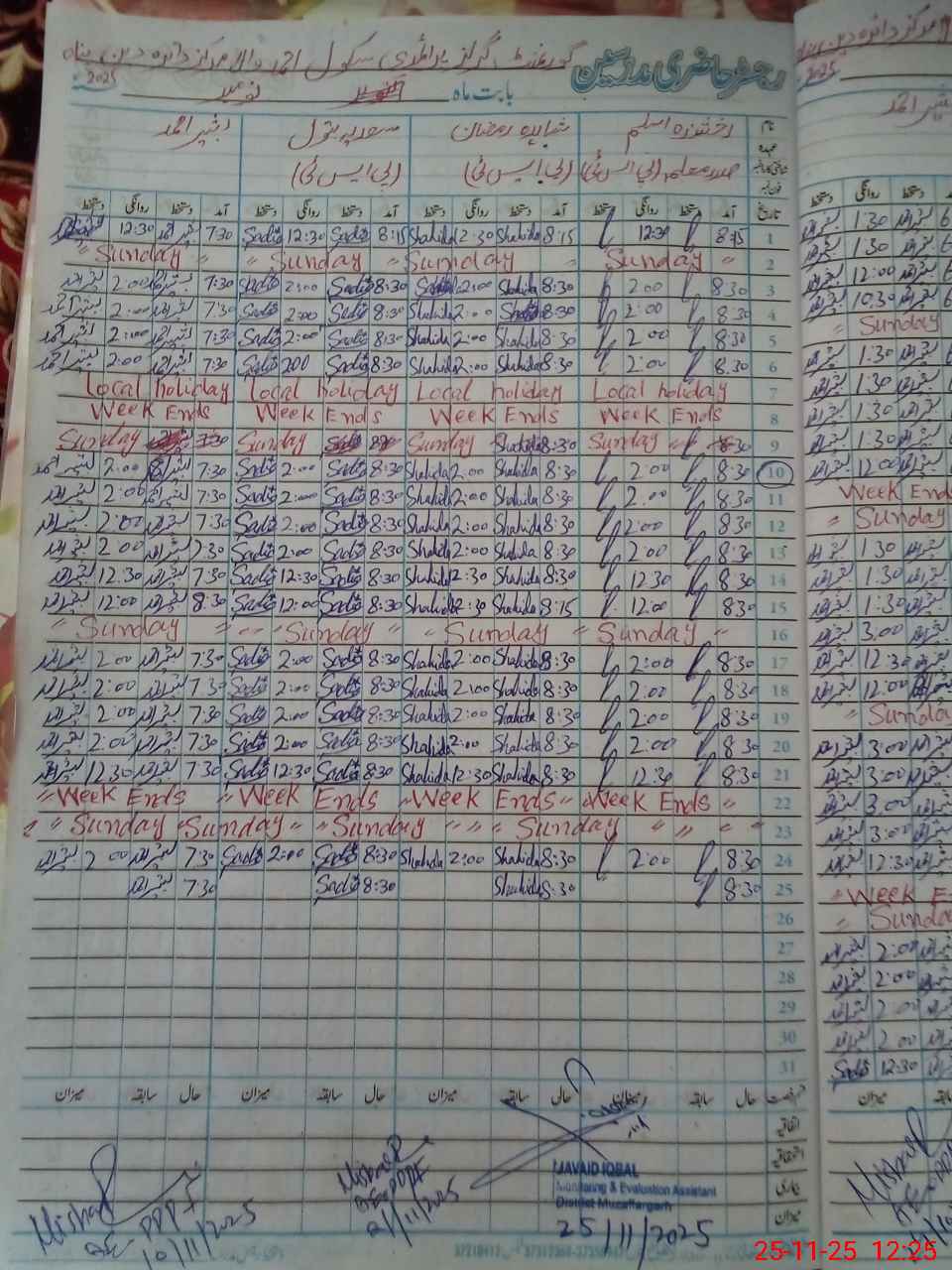 | CNIC | Full Name | Designation | R/C | Absence During Last Calender Month |