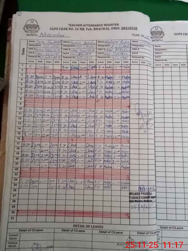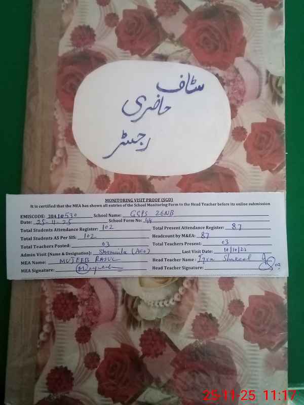 | EMIS Code: 38410530 | Name of School: GGPS CHAK NO.26 NB | |||