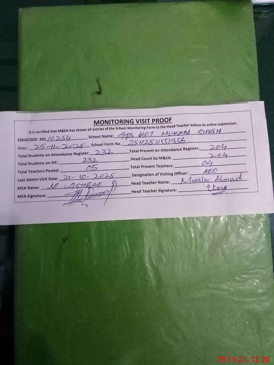 | EMIS Code: 39210254 | Name of School: GPS KOT HUKAM SINGH | |||