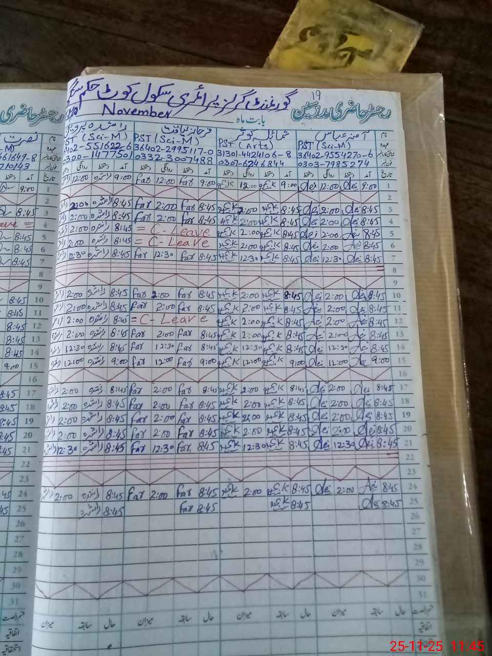 | CNIC | Full Name | Designation | R/C | Absence During Last Calender Month |