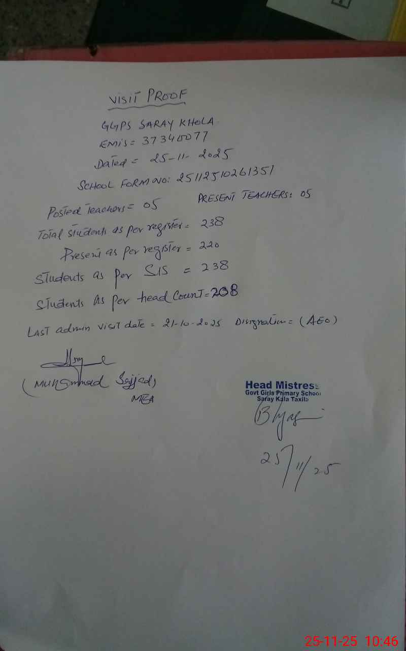 | EMIS Code: 37340077 | Name of School: GGPS SARAY KHOLA | |||
