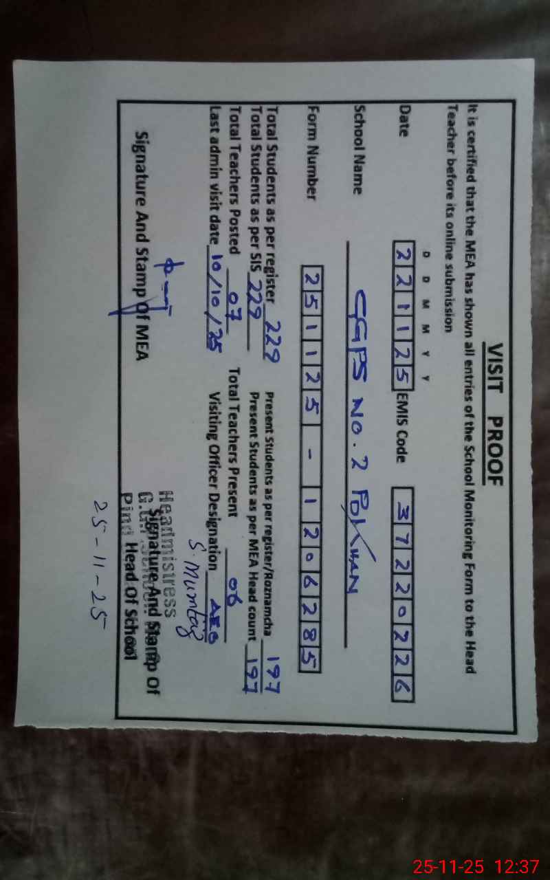 | EMIS Code: 37220226 | Name of School: GGPS NO 2 P.D KHAN | |||