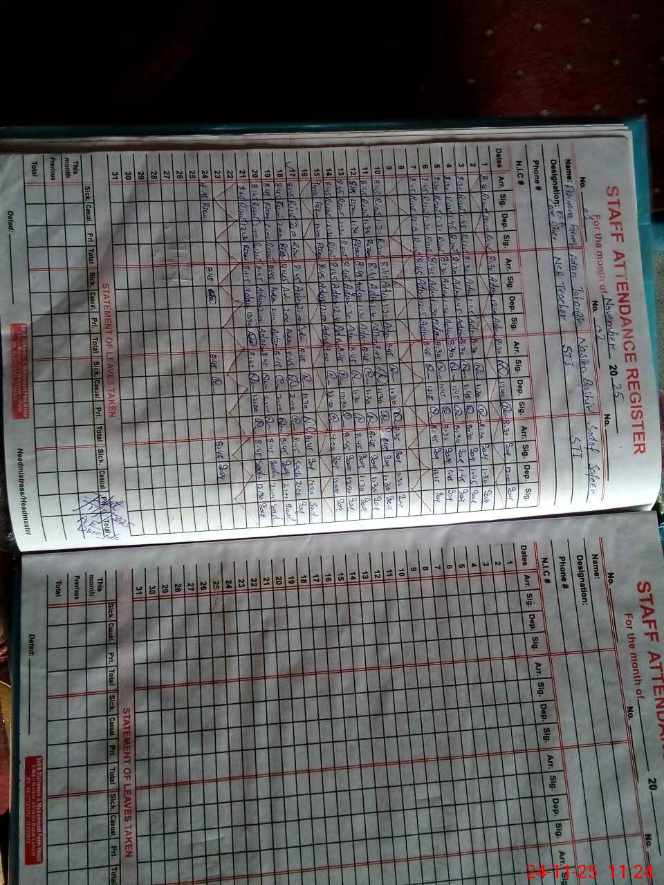 | CNIC | Full Name | Designation | R/C | Absence During Last Calender Month |