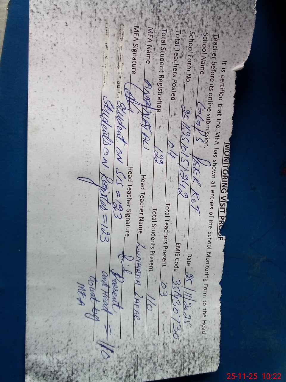 | EMIS Code: 35430730 | Name of School: GGPS PEER KOT | |||