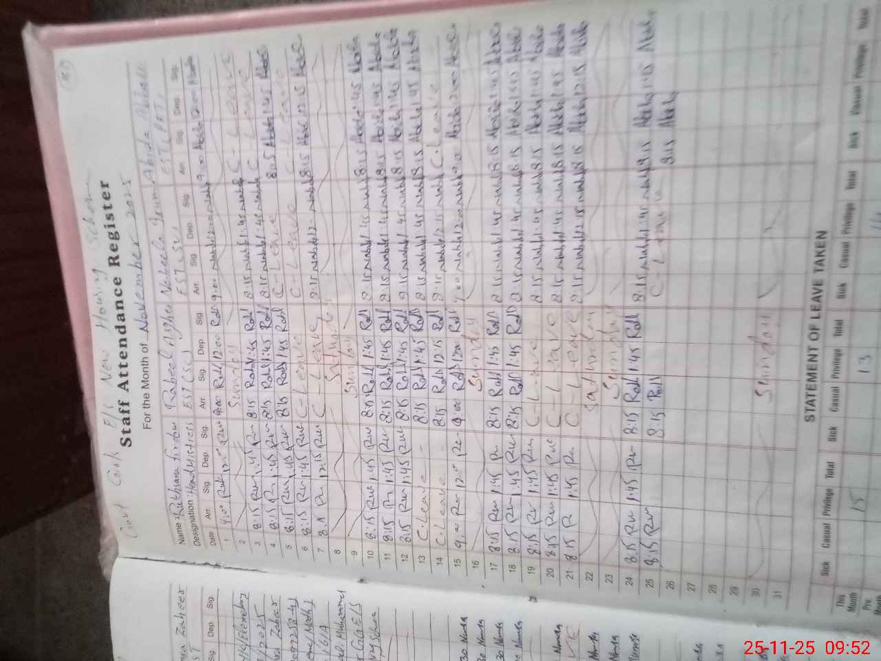 | 31**** | Ma**** Hu**** | Regular | 2 | 0 | 0 | 0 | 0 | 0 | 0 | 0 | 2 | Casual | |