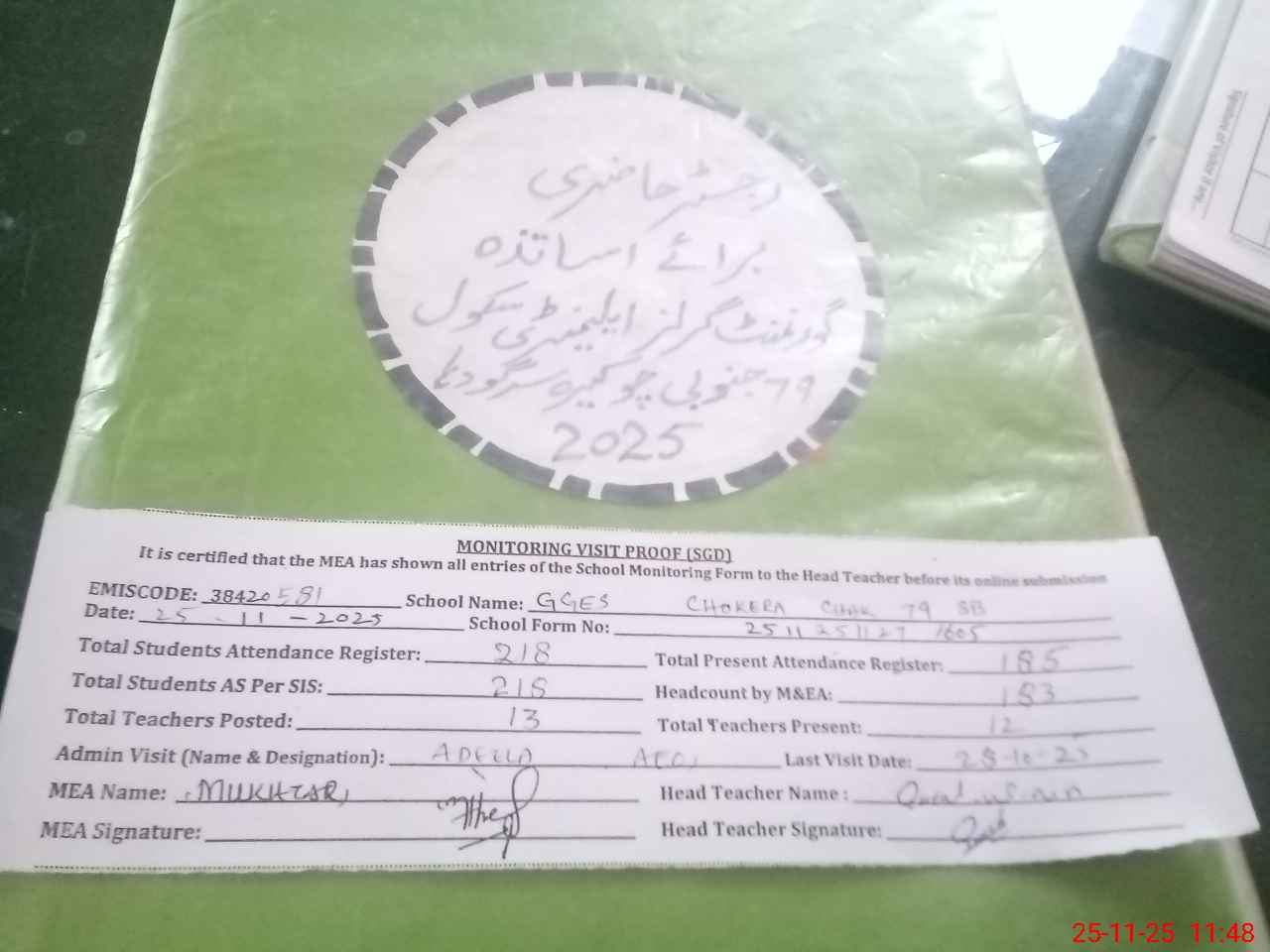 | EMIS Code: 38420581 | Name of School: GGES CHAK NO.79 SB CHAUKERA | |||