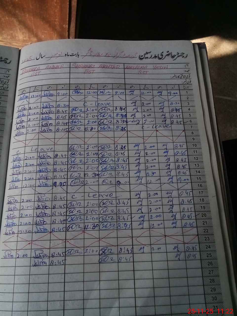 | CNIC | Full Name | Designation | R/C | Absence During Last Calender Month |