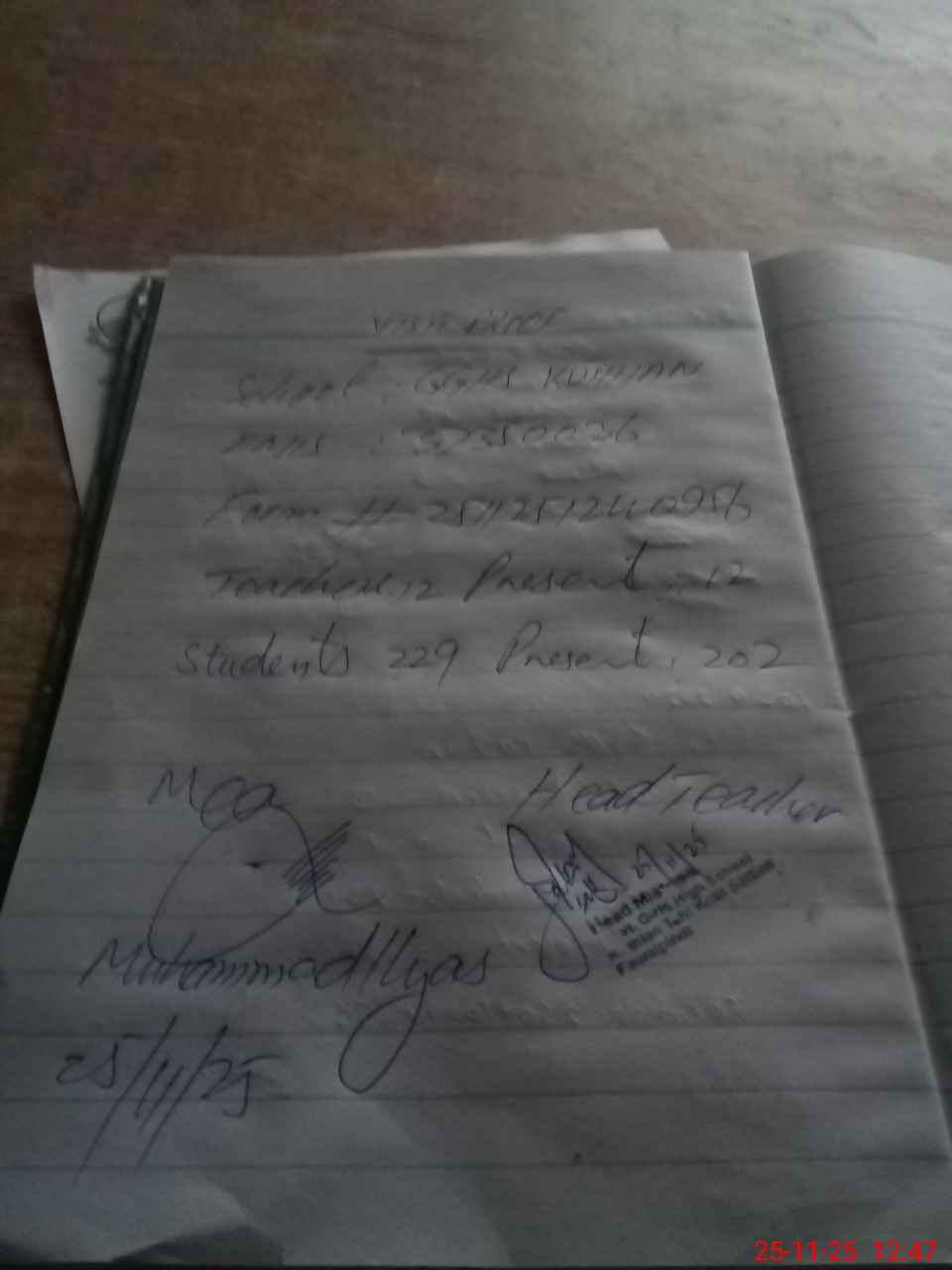 | Attendance Register | Head Teacher | MEA with School | Visit Proof |