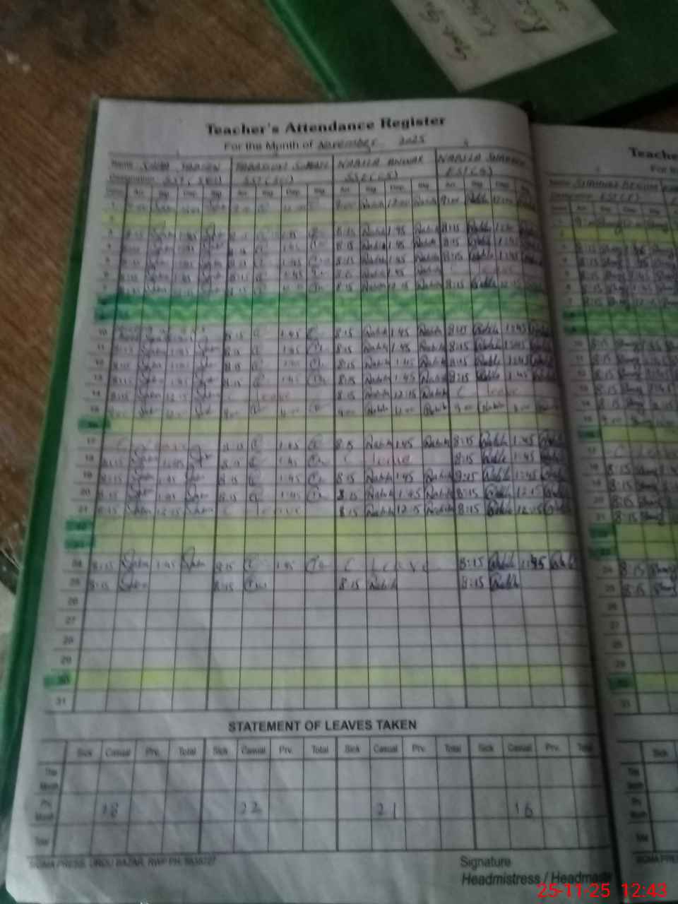 | Leave | Duty | Absent | Maternity | Medical | Ex- Pak |
