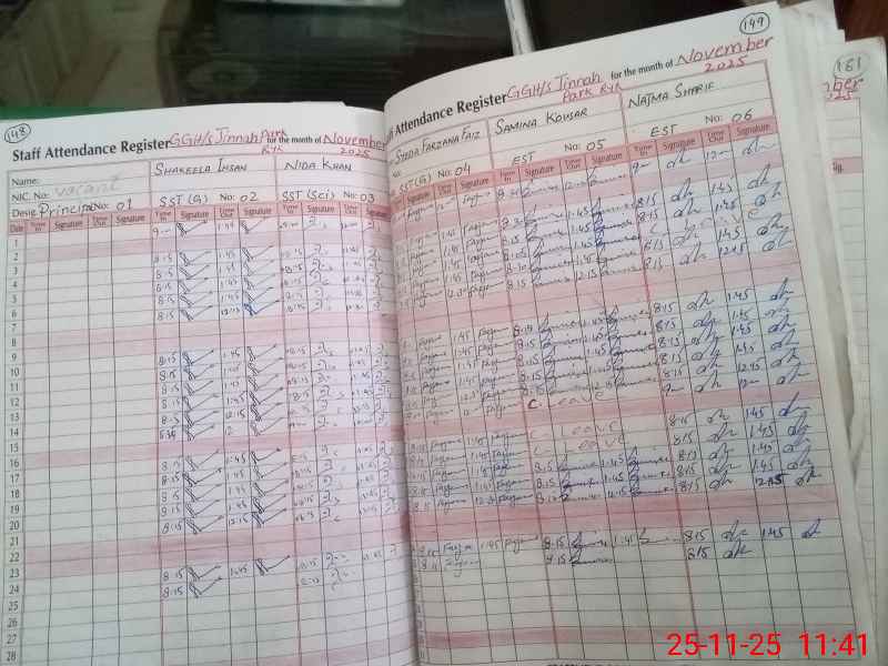 | CNIC | Full Name | Designation | R/C | Absence During Last Calender Month |