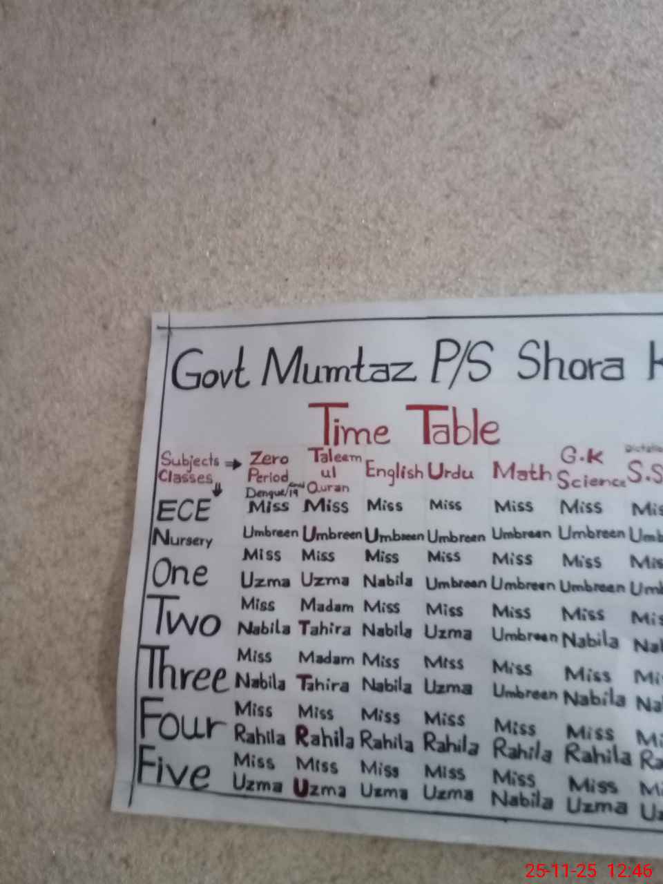 | EMIS Code: 35210462 | Name of School: GGPS MUMTAZ NABI PURA GULBERG-III | |||