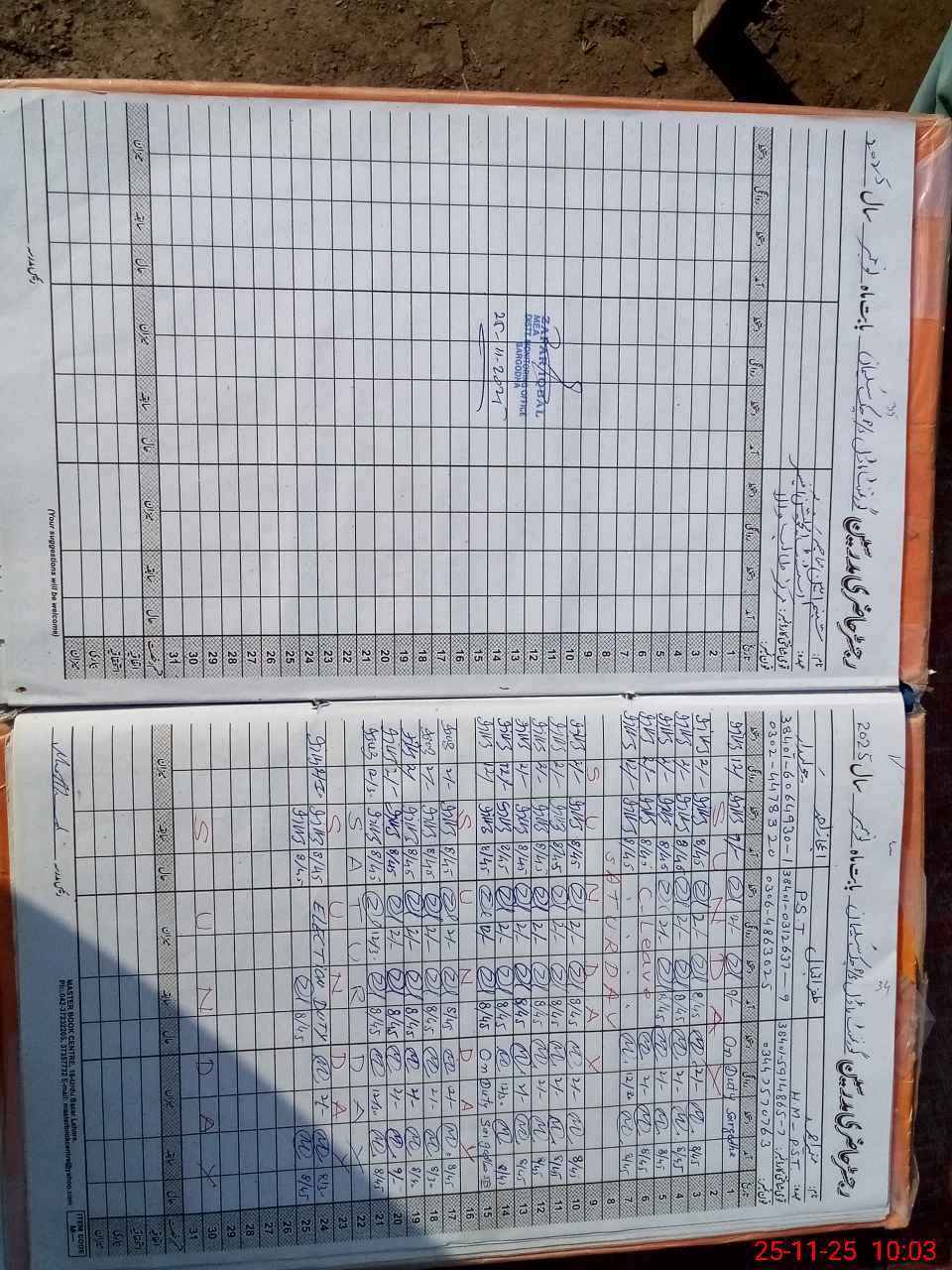| CNIC | Full Name | Designation | R/C | Absence During Last Calender Month |