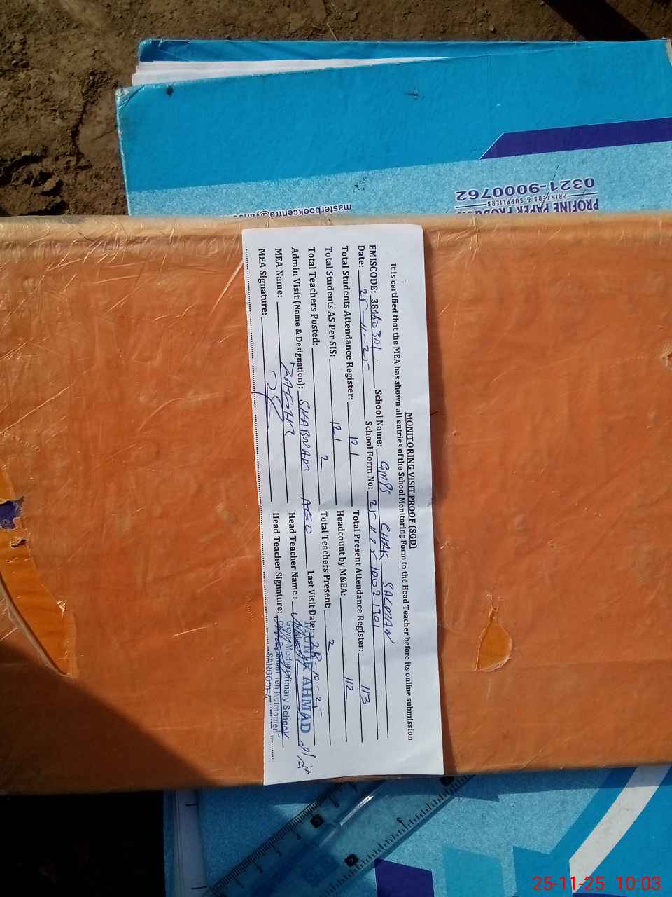 | Attendance Register | Head Teacher | MEA with School | Visit Proof |