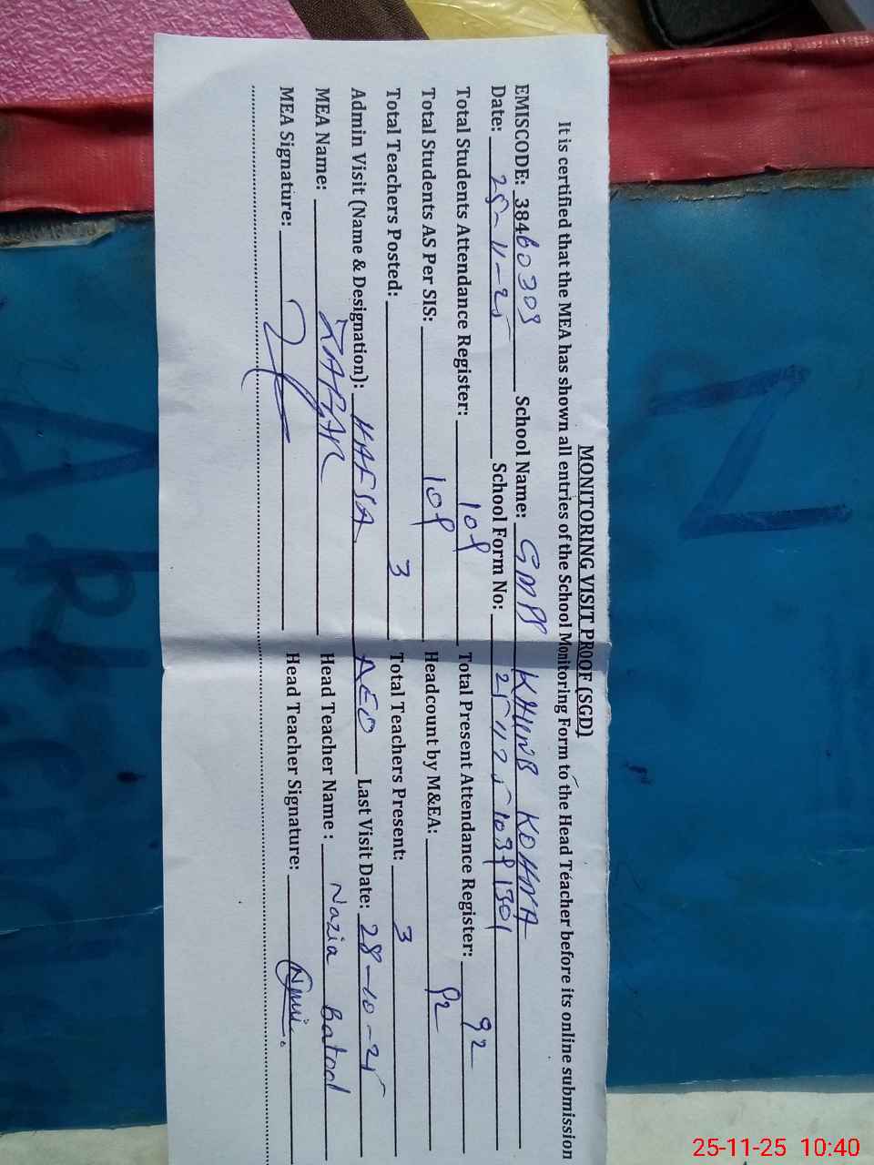 | EMIS Code: 38460303 | Name of School: GMPS KHUMB KOHNA | |||
