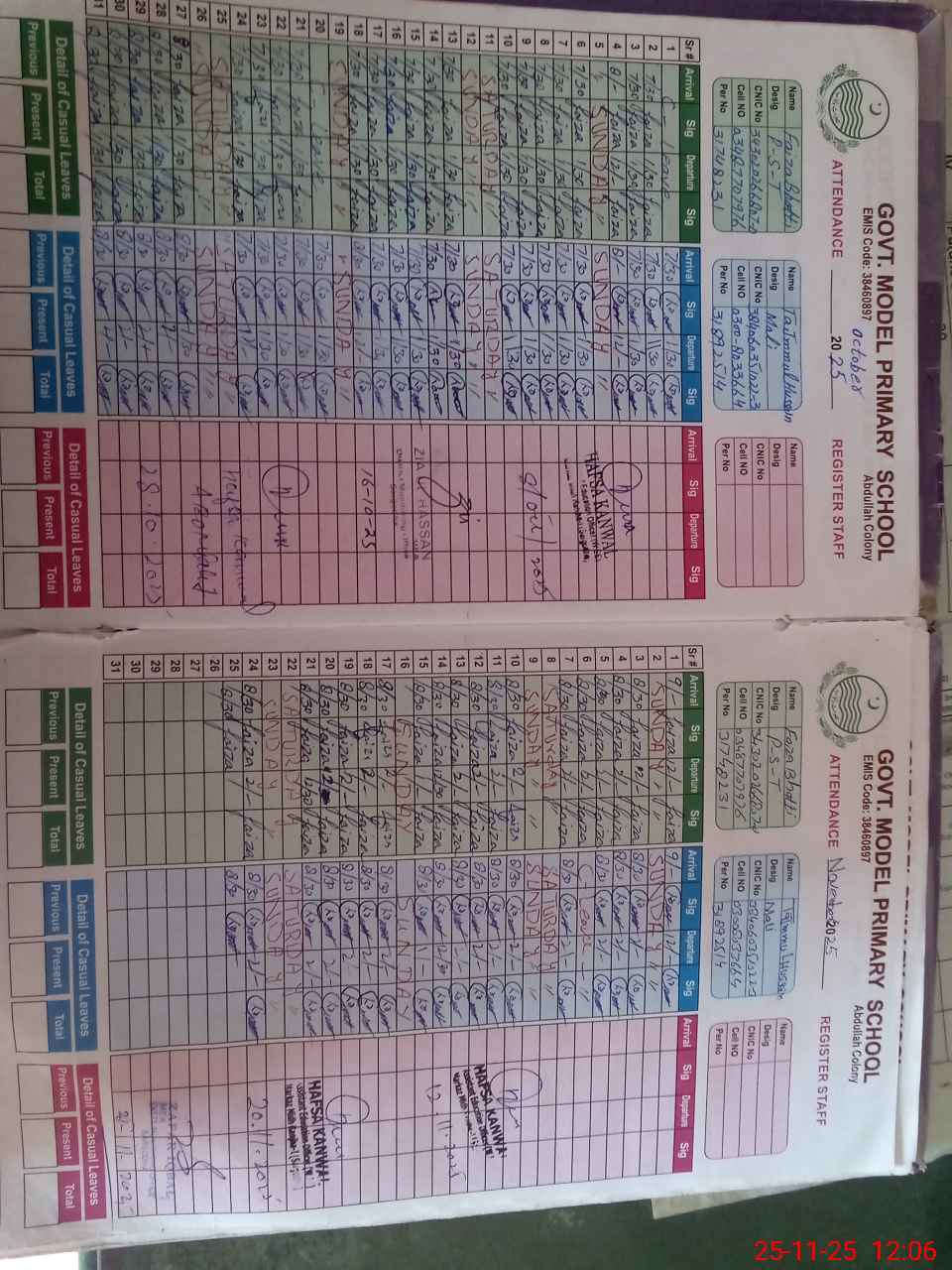 | CNIC | Full Name | Designation | R/C | Absence During Last Calender Month |