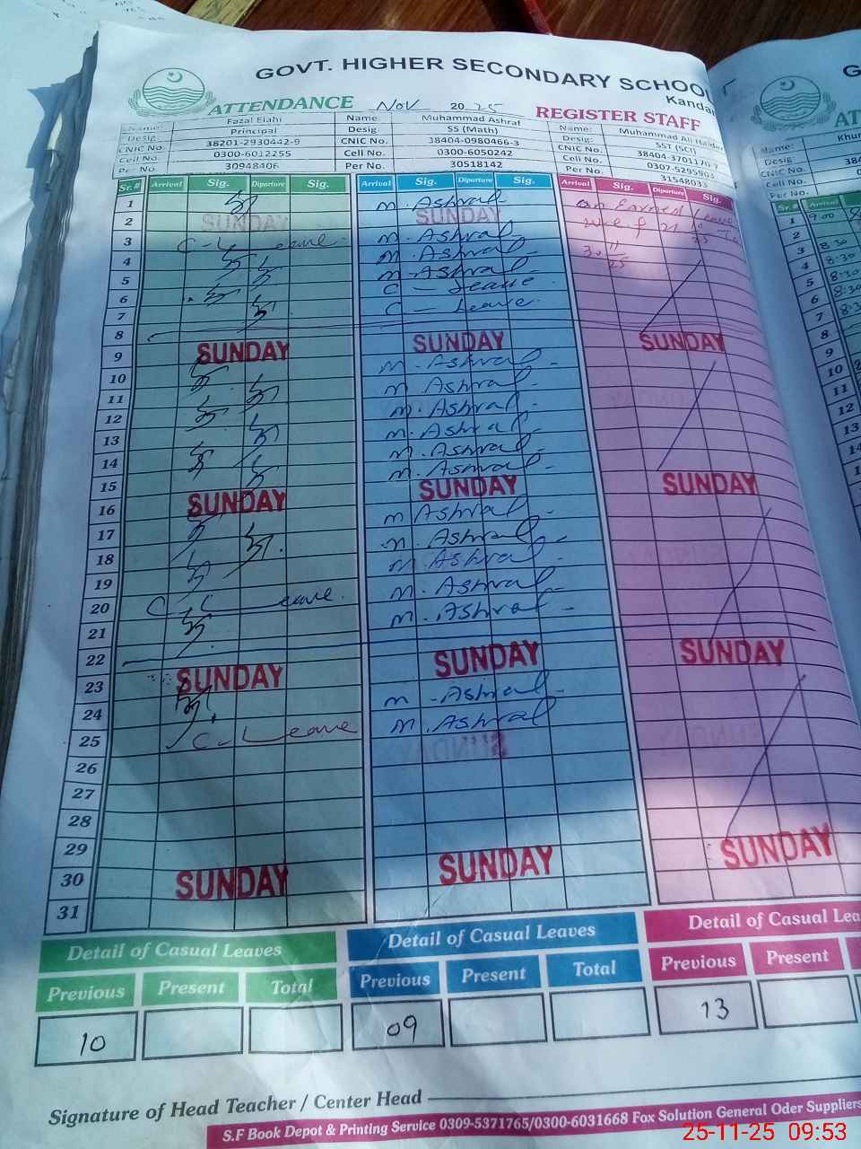 | 38**** | Mu**** Wa**** UlHa**** | Contract | 0 | 0 | 0 | 0 | 0 | 0 | 0 | 0 | 0 | Absent (Un-Authorized) | |