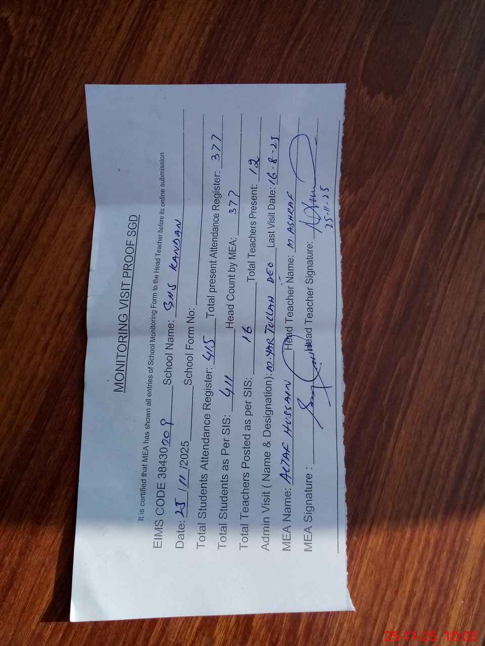 | EMIS Code: 38430009 | Name of School: GHSS KANDAN SHAHPUR | |||