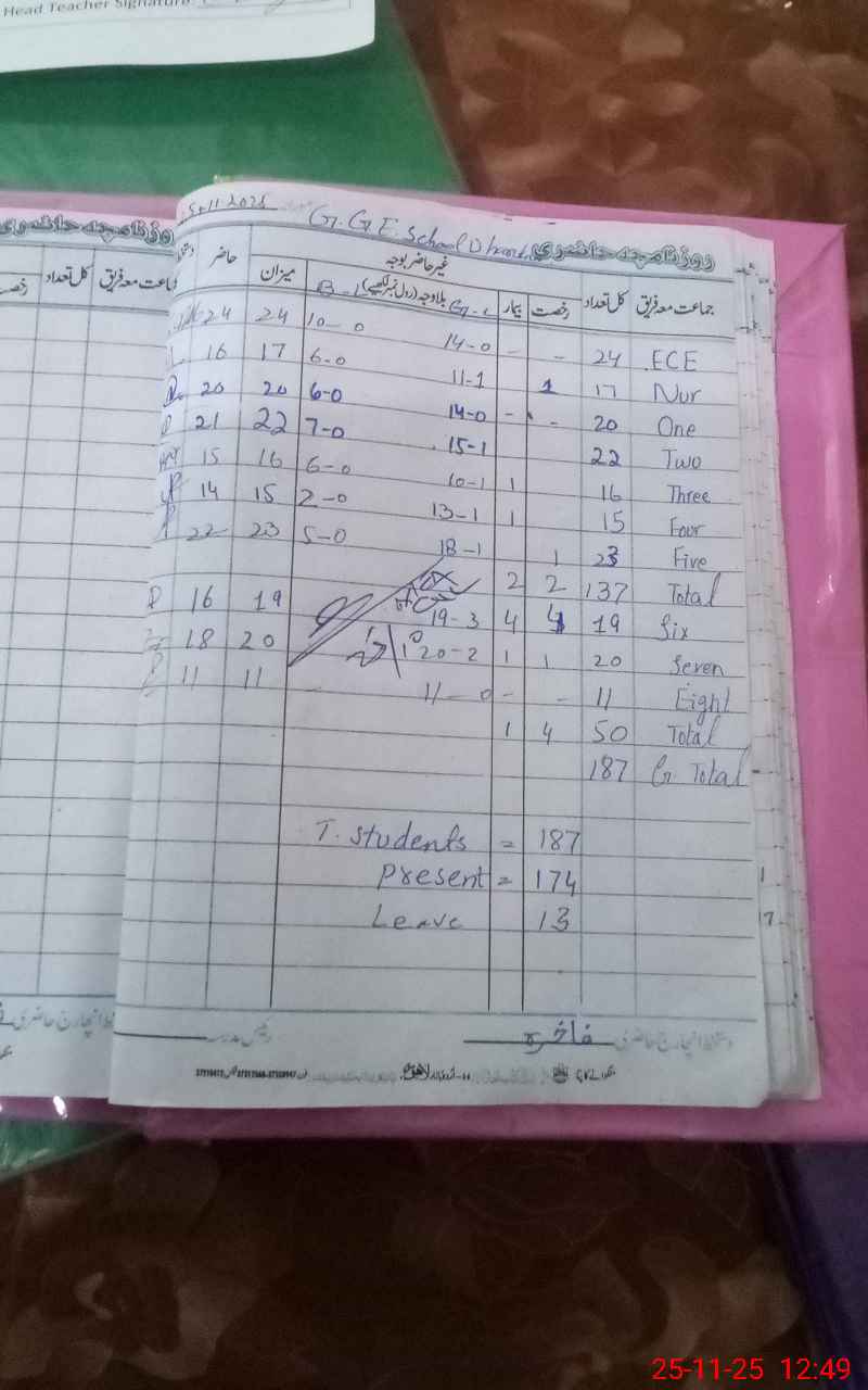 | Attendance Register | Head Teacher | MEA with School | Visit Proof |