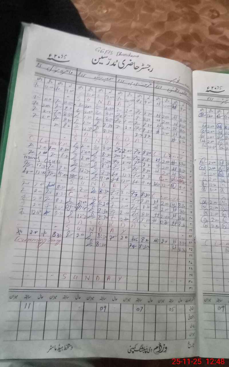 | CNIC | Full Name | Designation | R/C | Absence During Last Calender Month |