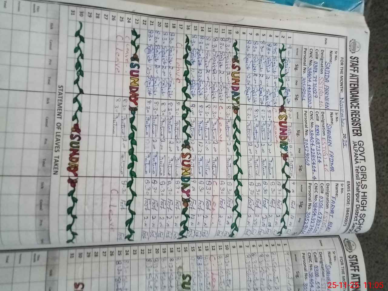 | CNIC | Full Name | Designation | R/C | Absence During Last Calender Month |