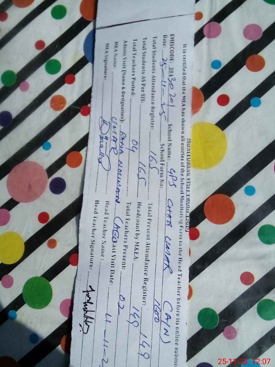 | Monitoring Date: 25-11-2025 | Start Time: 25-11-2025 11:36 AM | End Time: 25-11-2025 12:11 PM | Name of MEA: UM**** DR**** | |