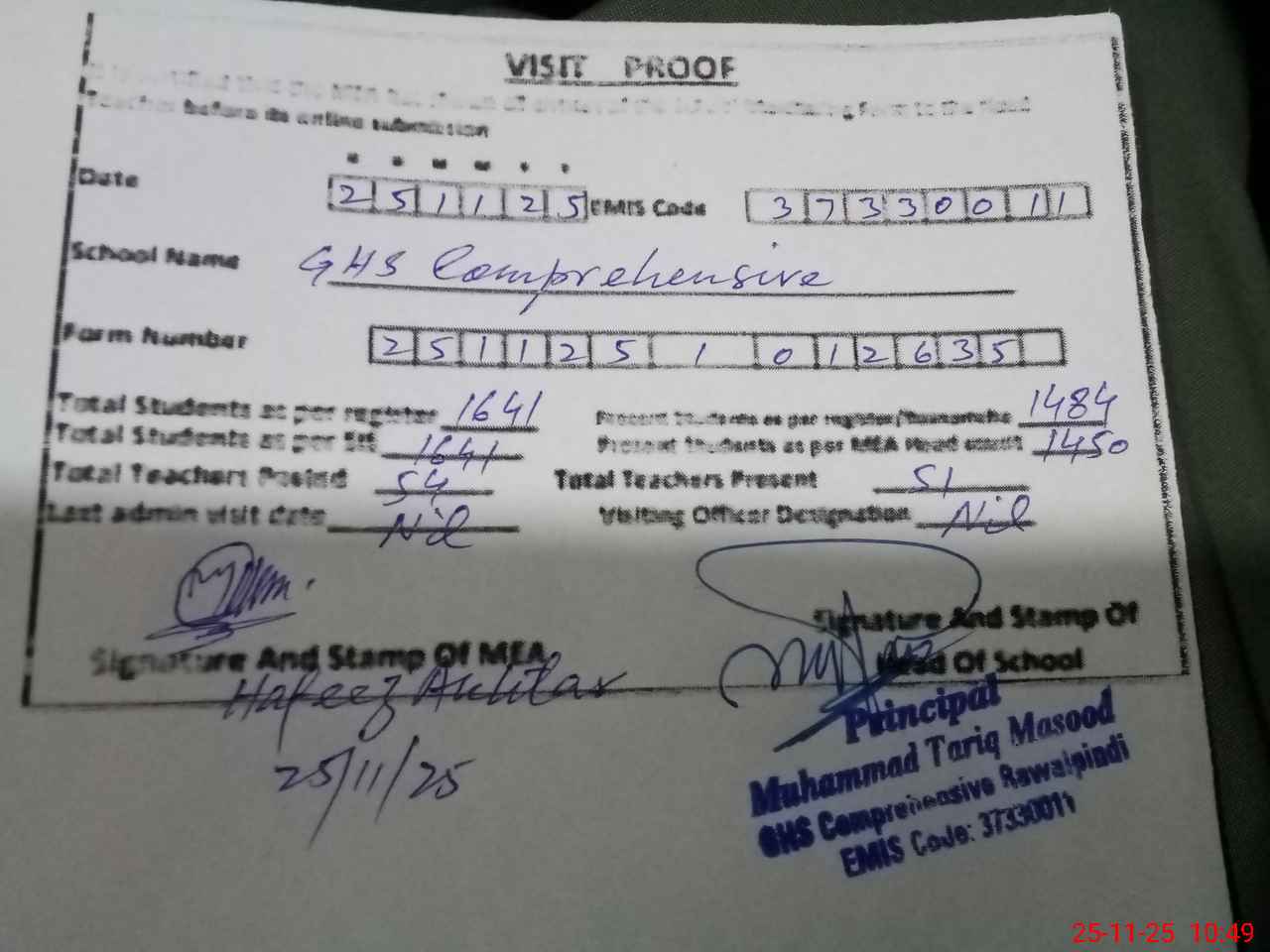 | EMIS Code: 37330011 | Name of School: GHS COMPREHENSIVE RAWALPINDI | |||