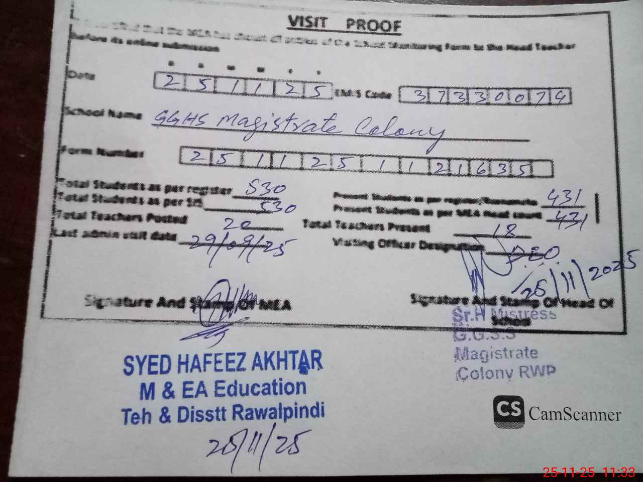 | EMIS Code: 37330074 | Name of School: GGHS MAGISTRATE COLONY | |||