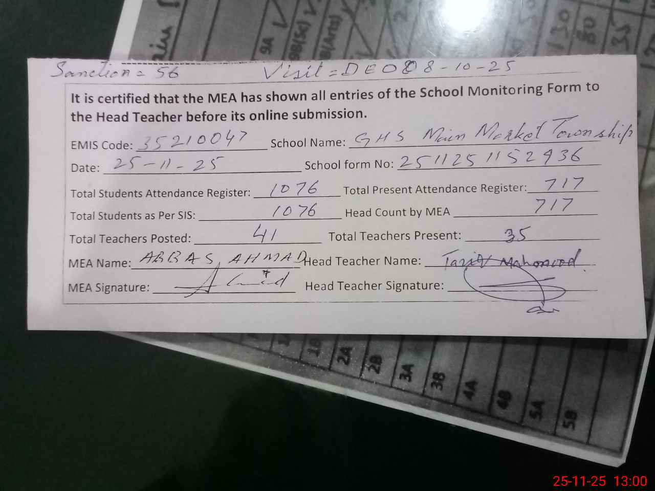 | Certified that this School was Inspected by the Undersigned MEA/DMO Today and the Information Stated Above is as Per Record. | |||||