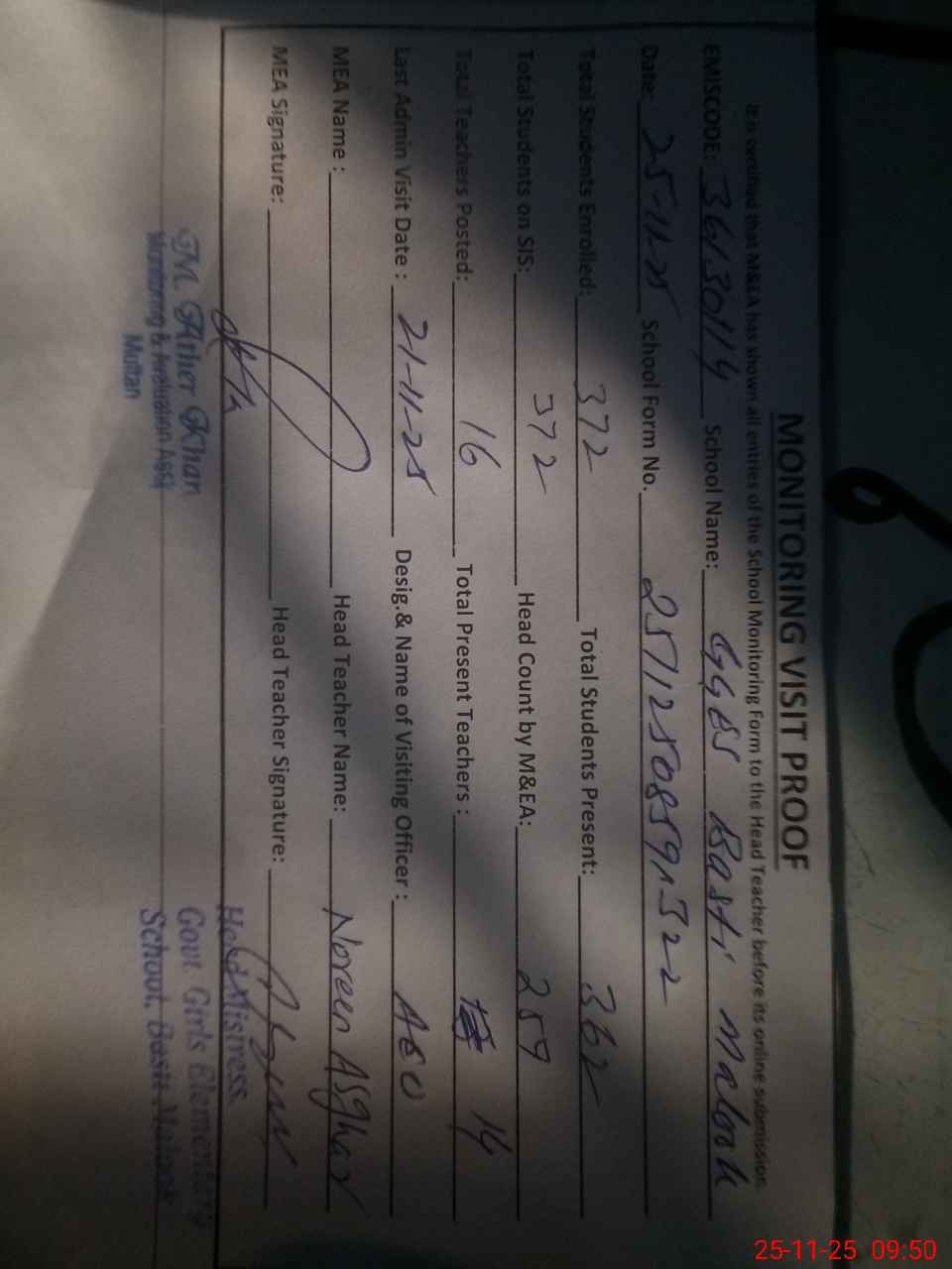 | Monitoring Date: 25-11-2025 | Start Time: 25-11-2025 08:59 AM | End Time: 25-11-2025 09:50 AM | Name of MEA: MU**** AT**** KH**** | |