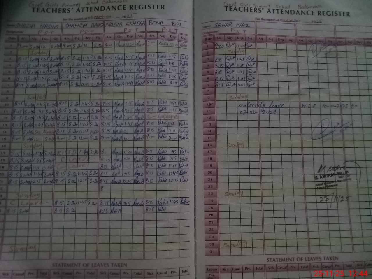 | 36**** | Sa**** Na**** | PST | Regular | 0 | 0 | 0 | 0 | 0 | 0 | 0 | 0 | 0 | Maternity |