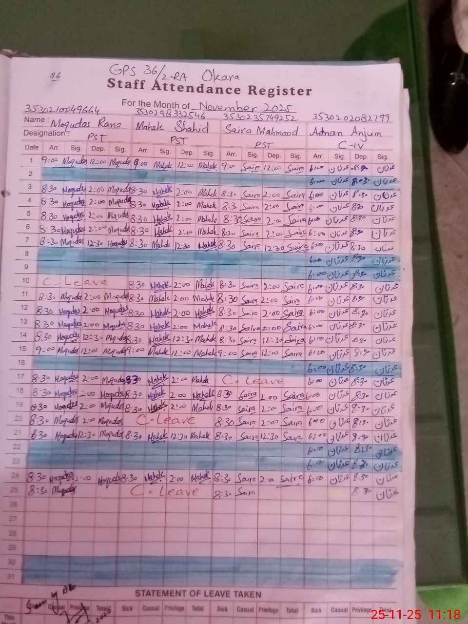 | 35**** | Ma**** Sh**** | PST | Regular | 0 | 0 | 0 | 0 | 0 | 0 | 0 | 0 | 0 | Casual |