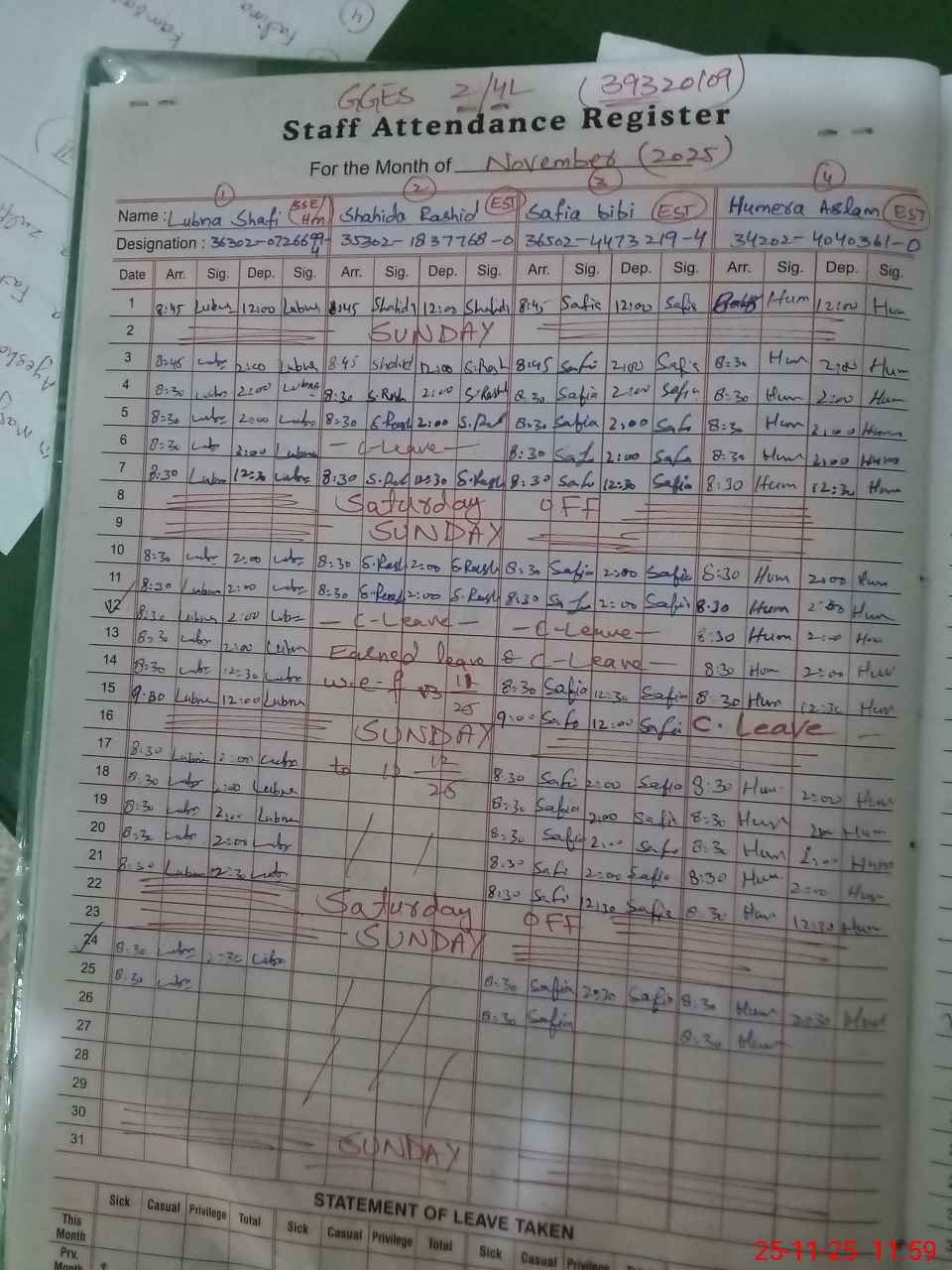 | Remarks (Use Separate Page if Required): Last admin visit by AEO on 24 November 2025 | |||||