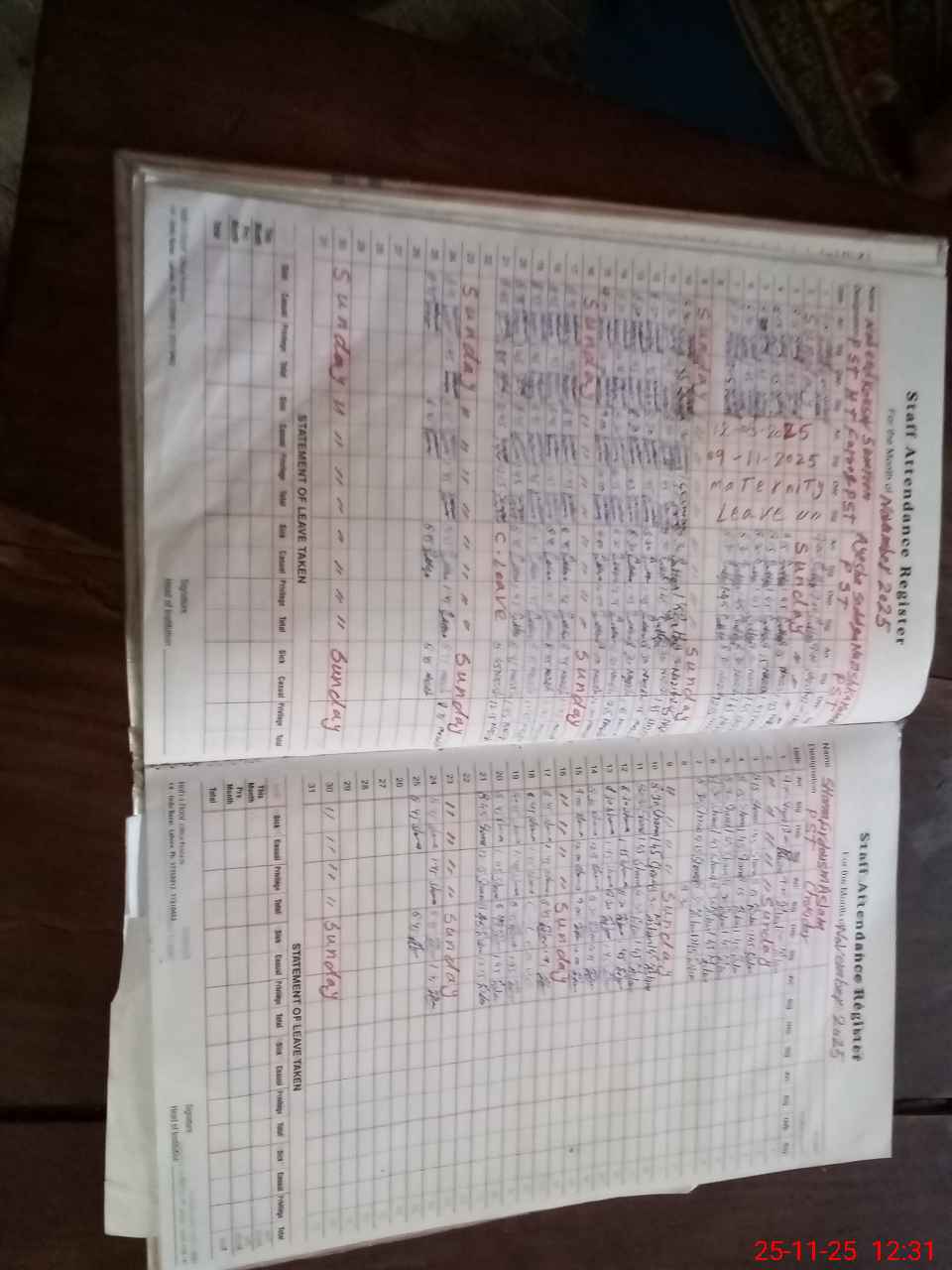 | Leave | Duty | Absent | Maternity | Medical | Ex- Pak |