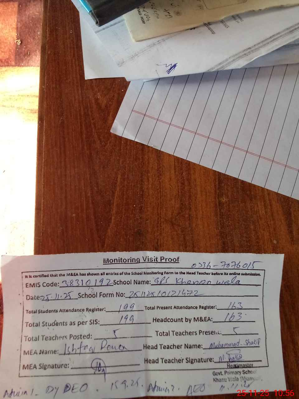 | EMIS Code: 38310192 | Name of School: GPS KHANOO WALA | |||