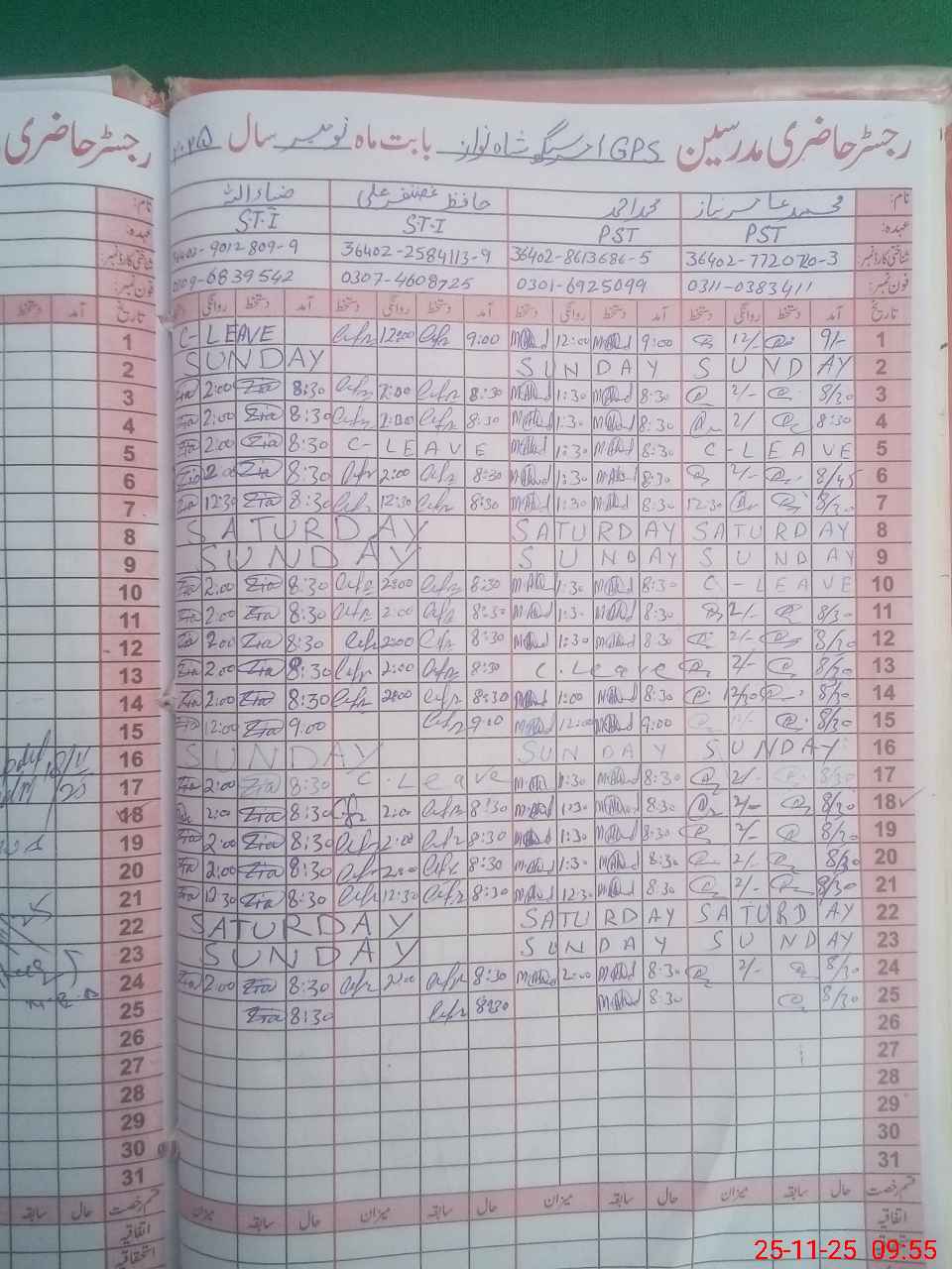 | CNIC | Full Name | Designation | R/C | Absence During Last Calender Month |