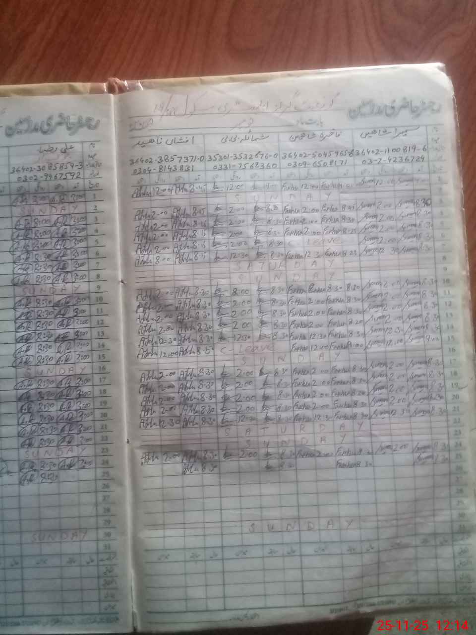| CNIC | Full Name | Designation | R/C | Absence During Last Calender Month |