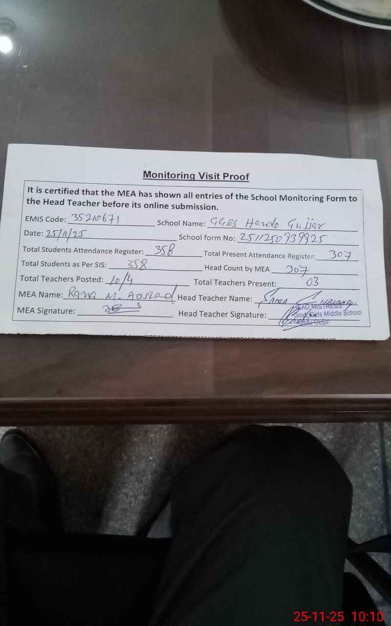 | EMIS Code: 35210671 | Name of School: GGES HANDO GUJAR | |||