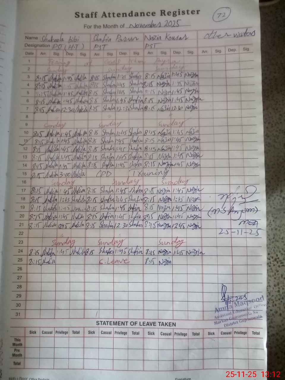 | Name: SH**** BI**** Designation: (School Headmaster's/Headmistress's) PST Phone/Cell Number: 03**** |
