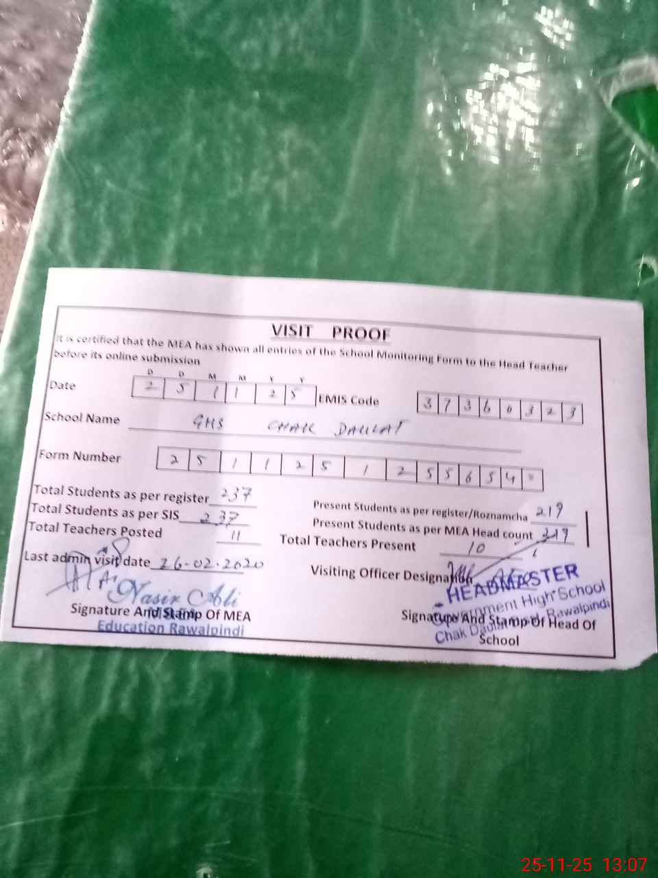 | EMIS Code: 37360323 | Name of School: GHS CHAK DAULAT | |||