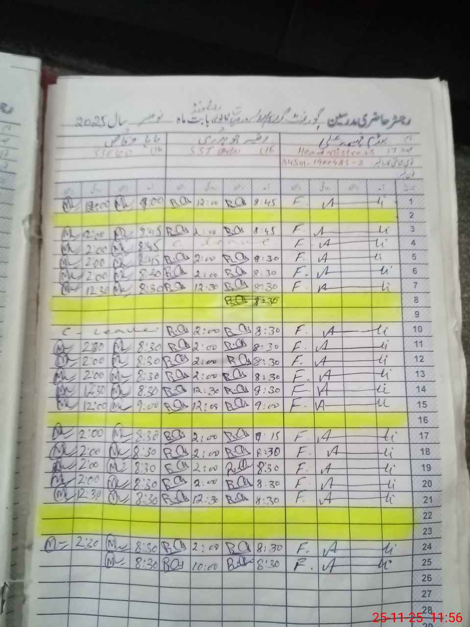 | Remarks (Use Separate Page if Required): 1. Afshan Rizwan EST has been long absent 25 Nov 2024 2. AEO Samreen conducted last visit on 27 Oct 2025 EMIS CODE 35220327 | |||||