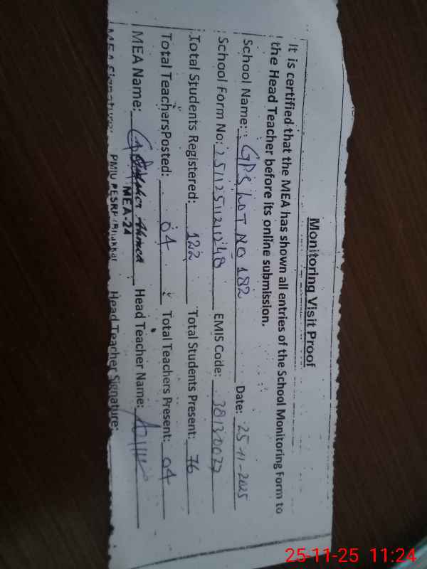 | EMIS Code: 38130077 | Name of School: GPS LOT NO 182 | |||