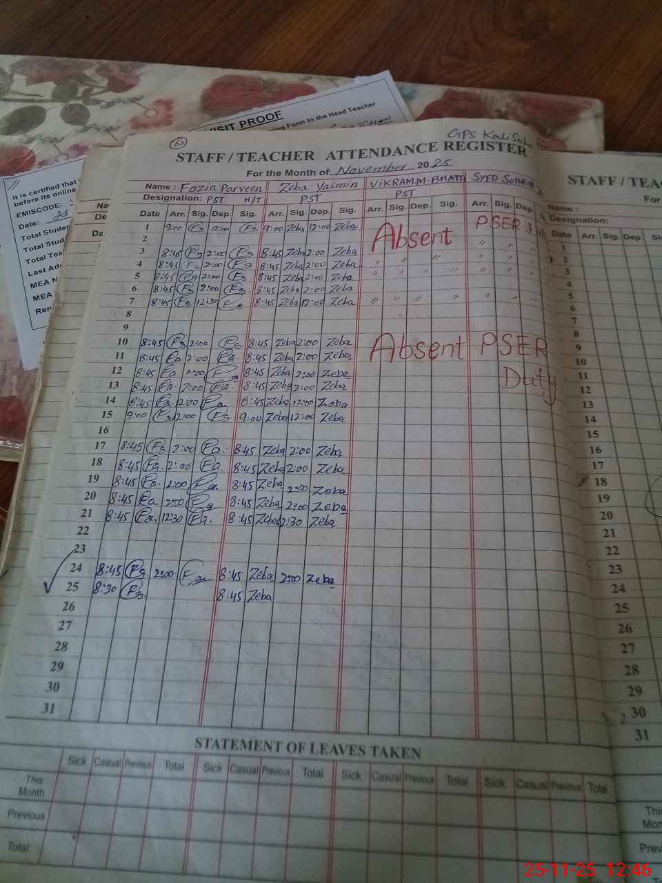 | Remarks (Use Separate Page if Required): VIKRAM M BHATTI PST ABSENT FROM 29 SEPTEMBER 2025 | |||||