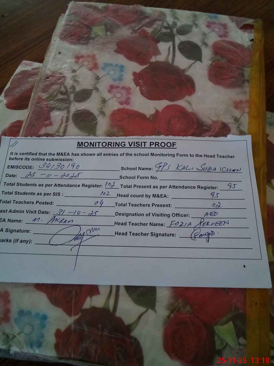 | EMIS Code: 34130190 | Name of School: GPS KALI SUBA | |||