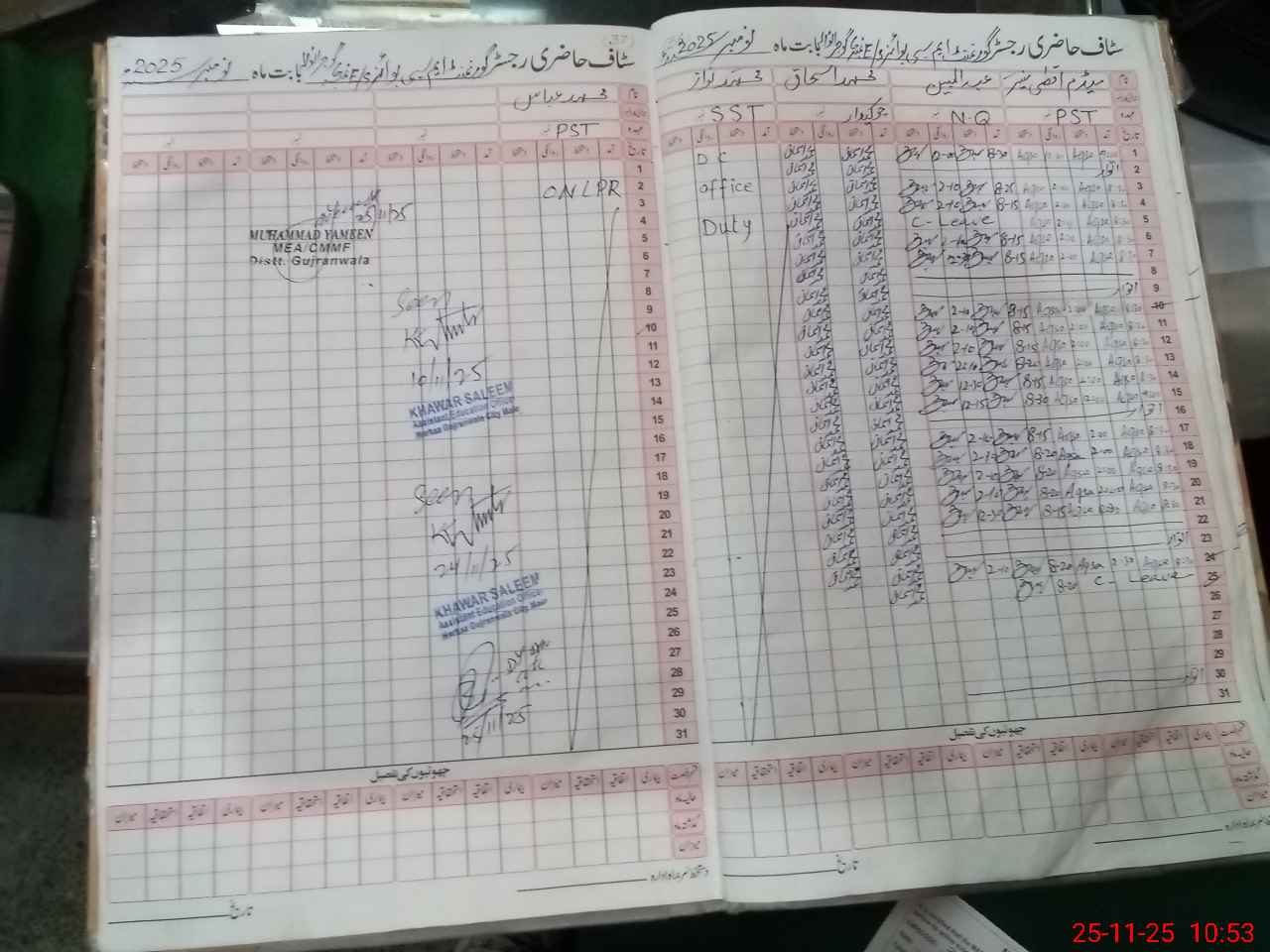| CNIC | Full Name | Designation | R/C | Absence During Last Calender Month |
