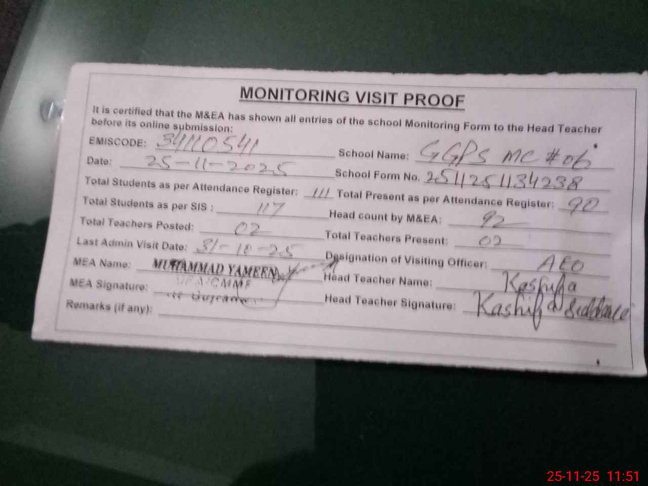 | EMIS Code: 34110541 | Name of School: GGPS MC NO.06 GUJRANWALA | |||